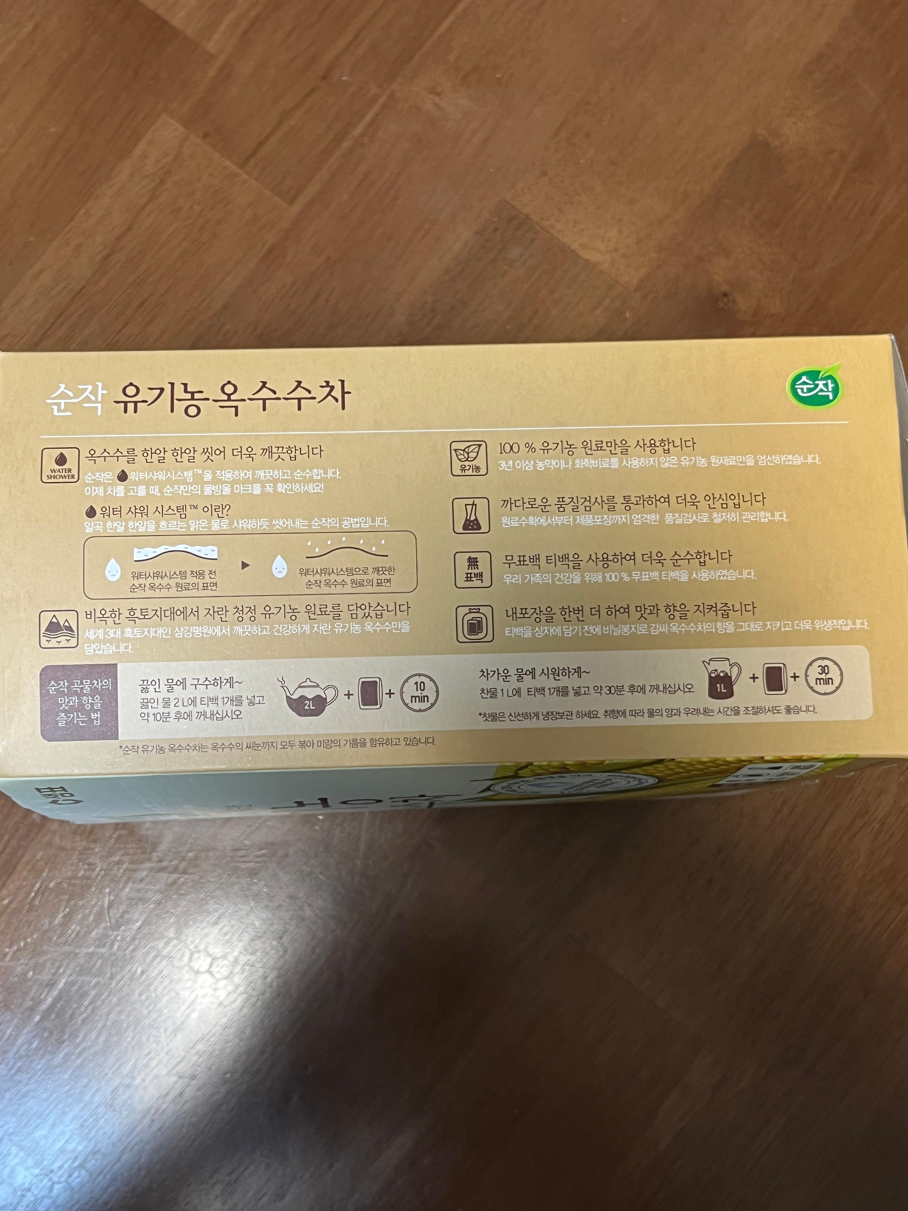 박스를 뜯으니 구수한 옥수수차 냄새가 확 풍깁니다.